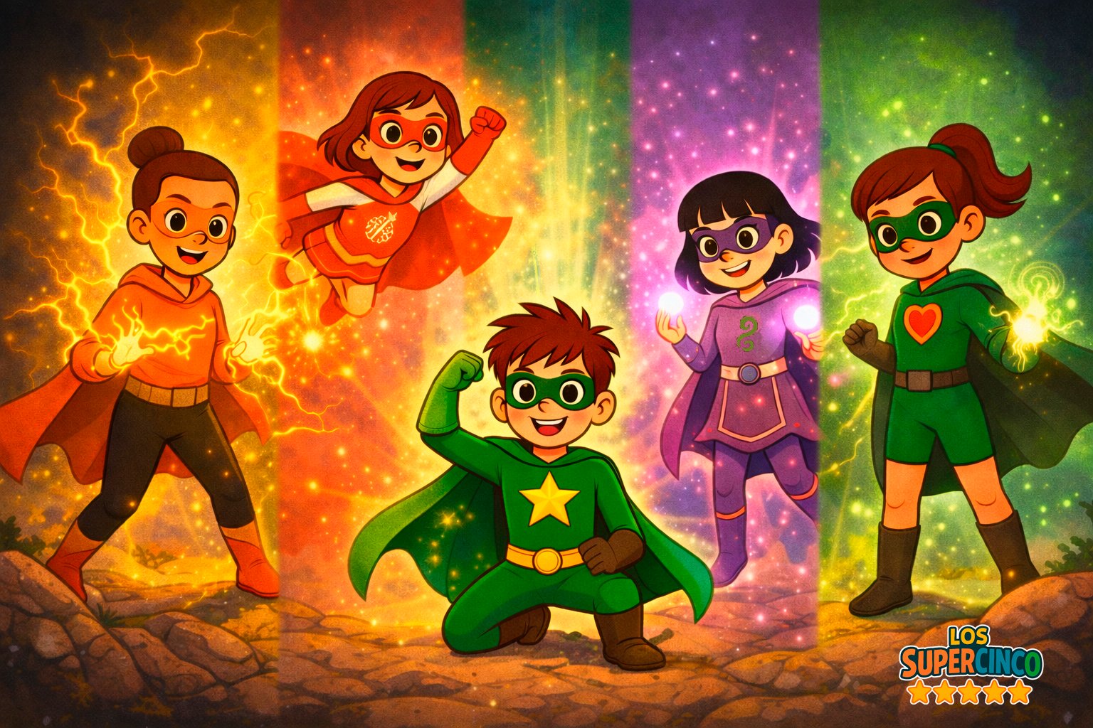 Los SuperCinco son un equipo de amigos que, gracias a su imaginación y a unos poderes muy especiales, convierten cada día en una nueva misión: